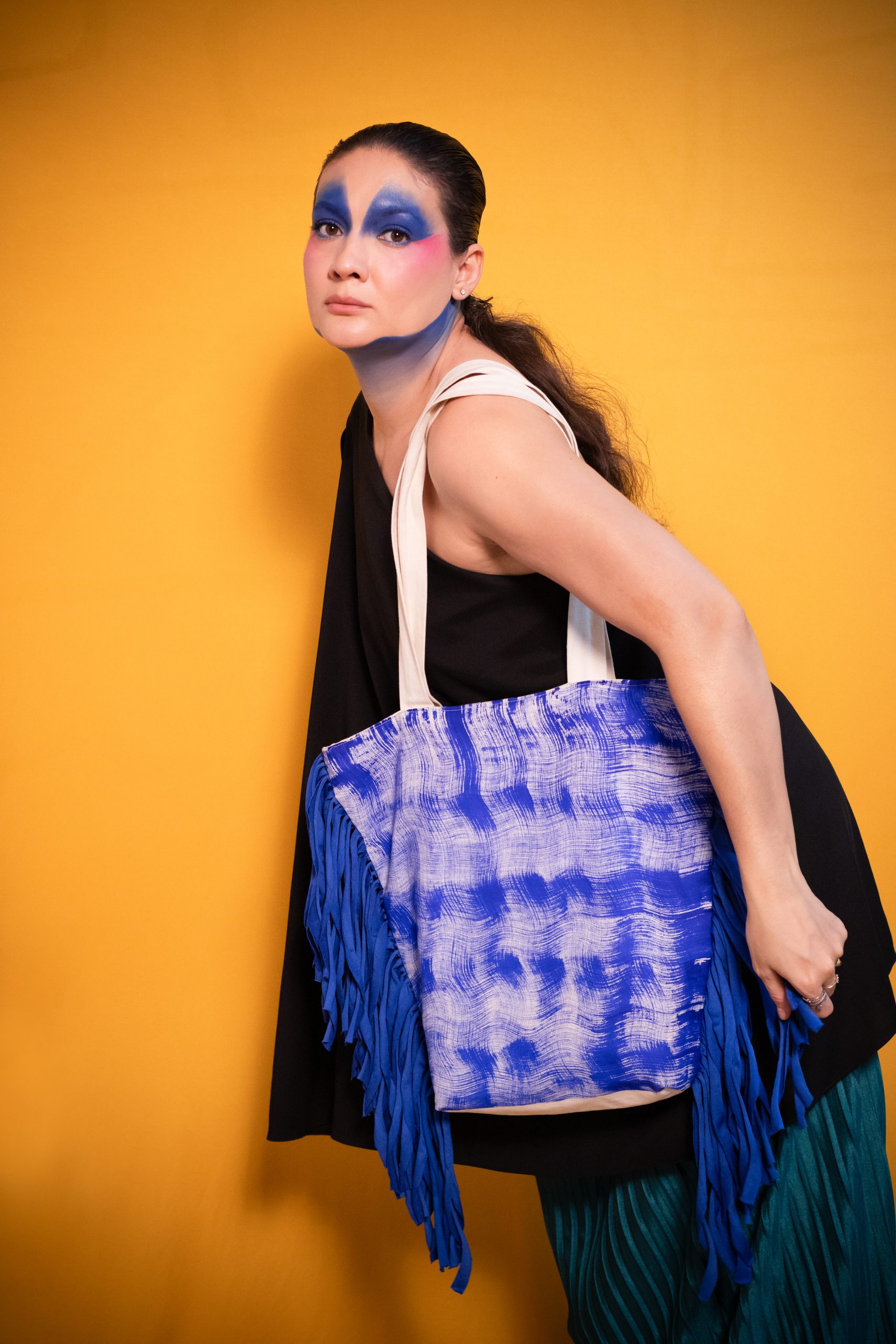 Bolsa Tipo Tote Fabricada en Lona 100% algodón, rígida, de alta resistencia, confeccionada manualmente en Colombia y pintada una a una, a mano por la artista Mar.